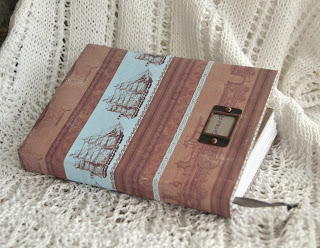 В последние дни теперь уже прошлого года, спешно делала блокнот в подарок. Тематика-морская. Или о путешествиях. А цвета -шоколадные. :-). Хотя, можно сказать,это цвет обшивки корабля...